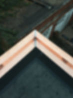 Copper strips installed in slate roof on shady section of house to prevent mildew and moss build up